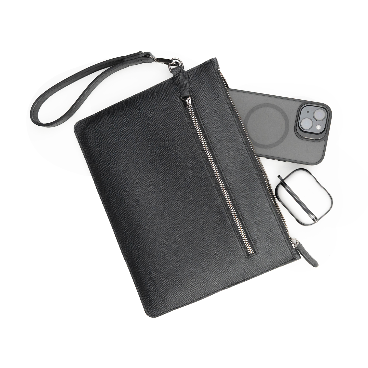 Lyra Clutch dengan desain clean dan bentuk firm yang menjaga siluetnya tetap rapi kapan pun kamu bawa. Dibuat dari PVC leather berkualitas dengan detail nickel zipper yang halus dan solid, Lyra menghadirkan keseimbangan antara gaya, fungsi, dan kepraktisan.